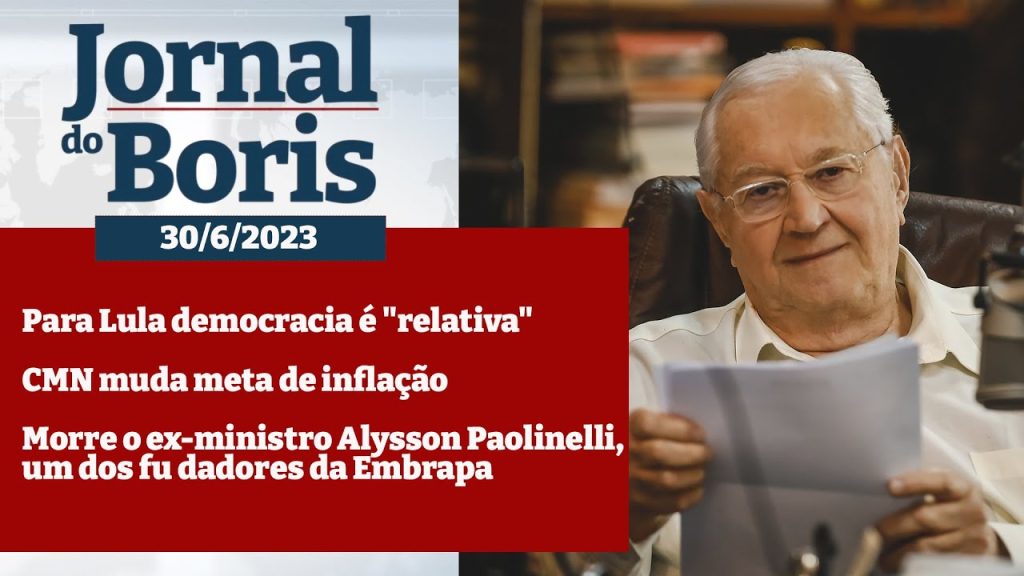 Para Lula democracia é “relativa” / CMN muda meta de inflação / Morre o ex-ministro Alysson Paolinelli, um dos fu dadores da Embrapa / Esses são assuntos em destaque na edição de hoje do Jornal do Boris