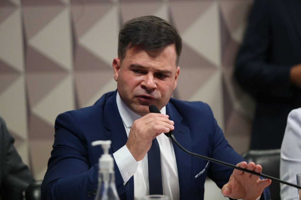 Ex-diretor-geral da Polícia Rodoviária Federal (PRF), Silvinei Vasques, prestando depoimento à Comissão Parlamentar Mista de Inquérito (CPMI) dos Atos Golpistas, no Senado, em Brasília. Ele foi preso preventivamente em 9 de agosto de 2023, em Florianópolis (SC), pela Operação Constituição Cidadã da Polícia Federal, que investiga o suposto uso da máquina pública para interferir no processo eleitoral de 2022