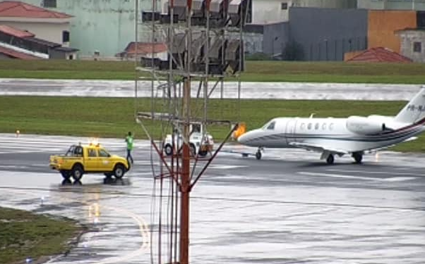 O jato, que tinha origem de Estrela D’Oeste, no interior de São Paulo, teve problemas com os freios durante a aterrissagem na pista principal.