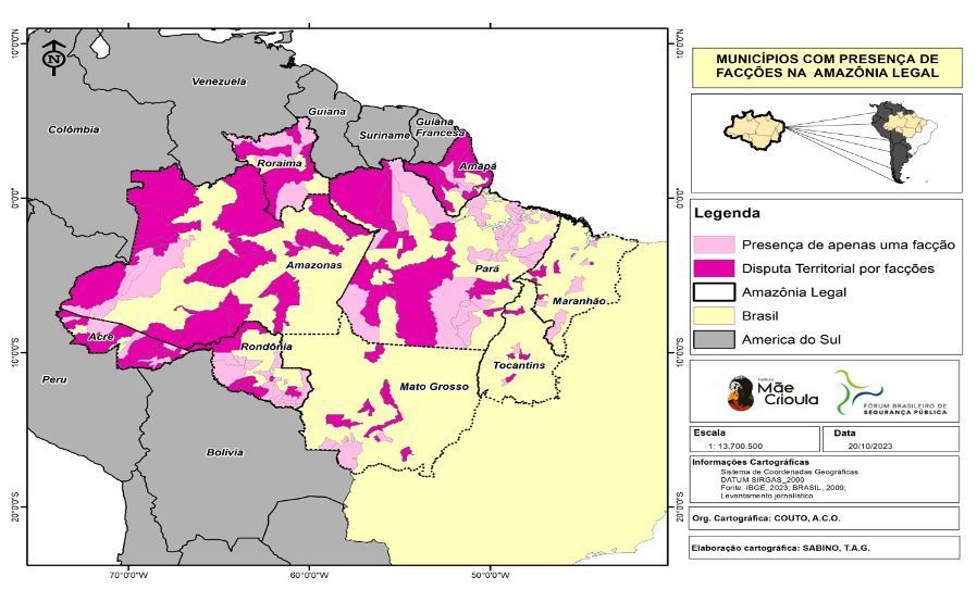 Municípios com presença de facções na Amazônia Legal / Reprodução/Fórum Brasileiro de Segurança Pública/Instituto Mãe Crioula