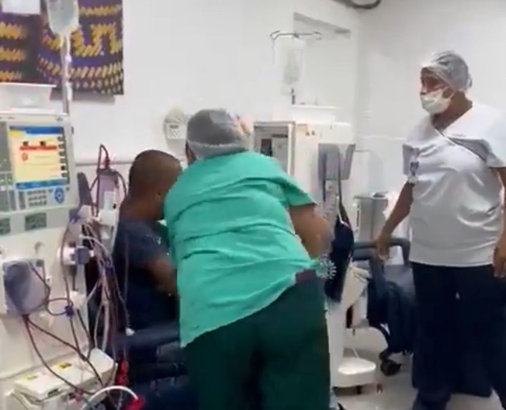 viralizou nas redes um vídeo de um paciente que se descontrola em sessão de hemodiálise e acaba destruindo os equipamentos do hospital.