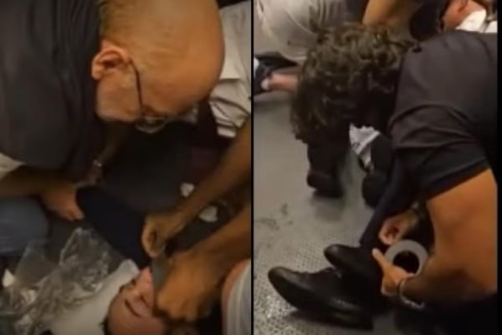 Tripulantes tentaram imobilizá-lo com uma fita adesiva. Aos berros, chegou a dizer: “Eles estão me matando”.