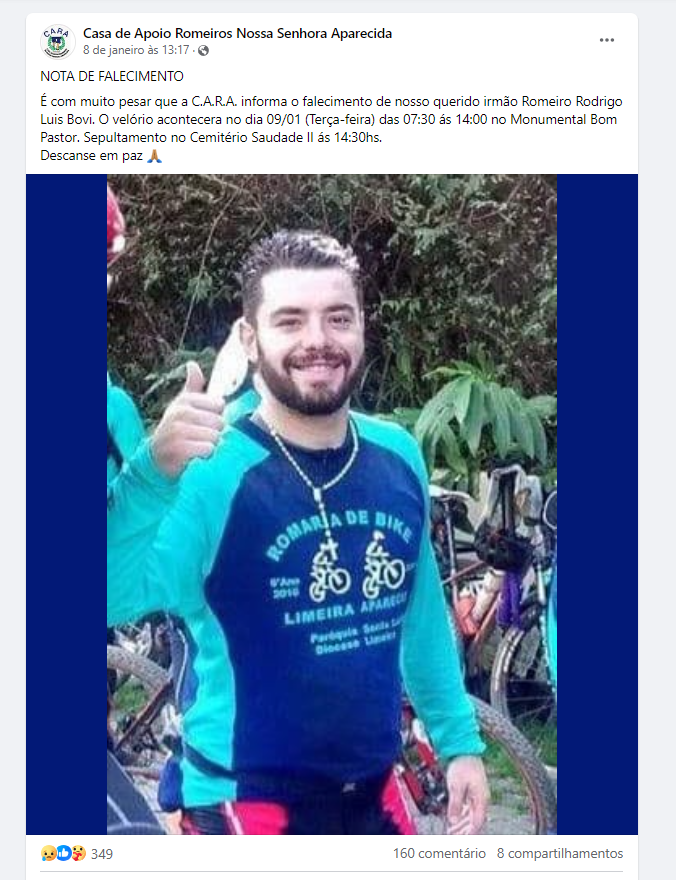 Rodrigo era casado e pai de uma menina, que não teve a idade revelada. O sepultamento ocorreu nesta terça-feira (9), no Cemitério Saudade 2, em Limeira.