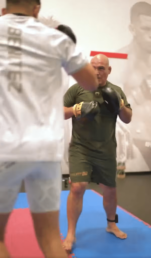 Cain Velasquez treina com Gabriel Benitez com tornozeleira eletrônica — Foto: Reprodução/X (antigo Twitter)