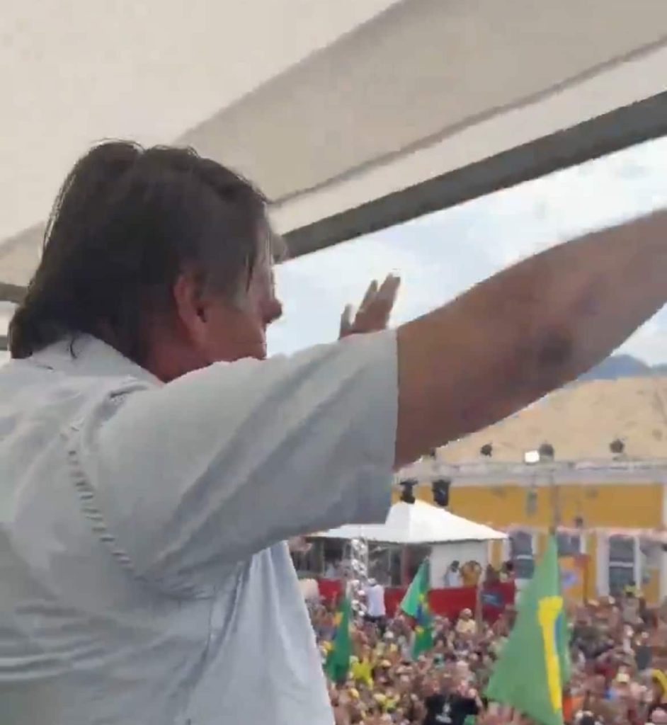 O ex-presidente Jair Bolsonaro participa na tarde desta quarta-feira (07) de um ato com apoiadores em São Sebastião, no litoral de São Paulo (SP).