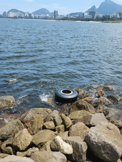 Uma foto que circula nas redes sociais mostra a roda perdida pela aeronave nos arredores do Aeroporto Santos Dumont. Veja abaixo: