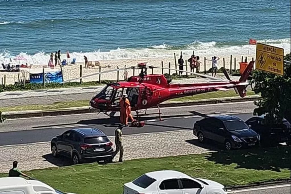 Um vídeo divulgado pelo Centro de Operações Rio (COR) registra o momento em que o helicóptero dos bombeiros pousa na Avenida Lúcio Costa, na pista sentido São Conrado, como parte do atendimento emergencial.