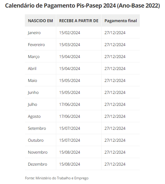 O pagamento do abono salarial PIS-Pasep 2024, relativo ao ano-base 2022, terá início na quinta-feira (15) para os trabalhadores que nasceram em janeiro.