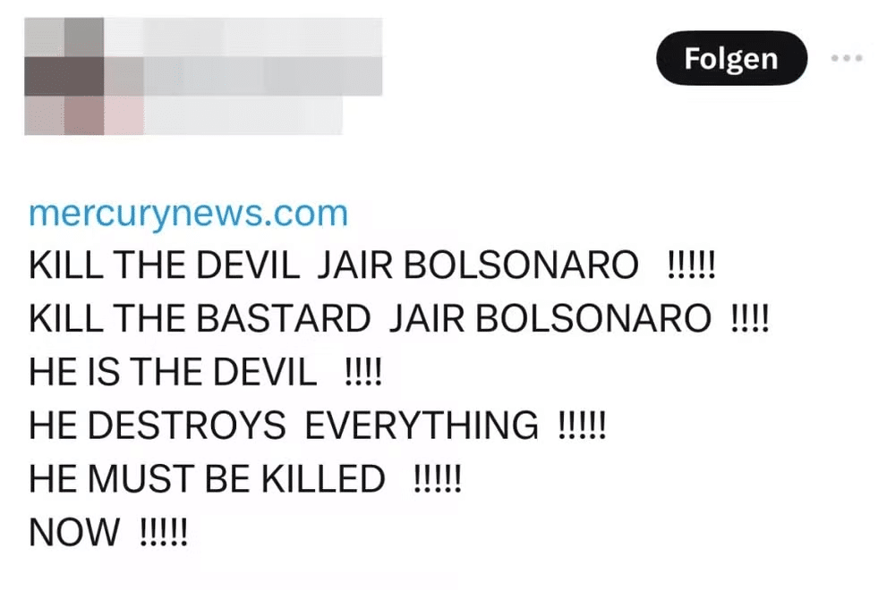 Em 2019, a jurada em questão havia postado insultos e até mesmo desejado a morte do político brasileiro no antigo Twitter. Em nove minutos, a equipe jurídica de Bruckner argumentou que tais opiniões eram incompatíveis com a Lei Fundamental da Alemanha, levando a um impasse no tribunal.