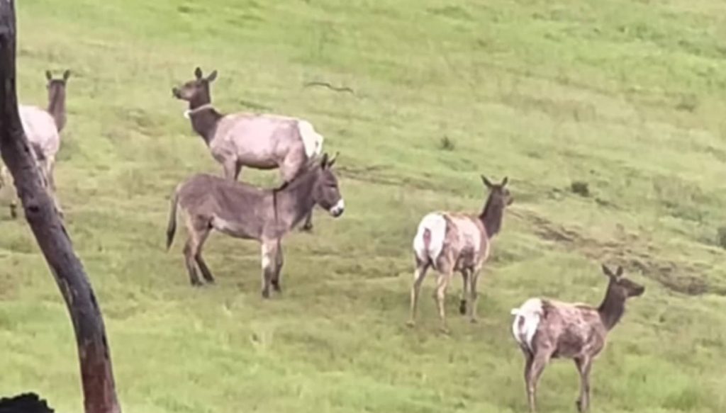 As imagens do burro em meio aos veados foram gravadas por Fennel e compartilhadas no perfil dele em uma rede social.