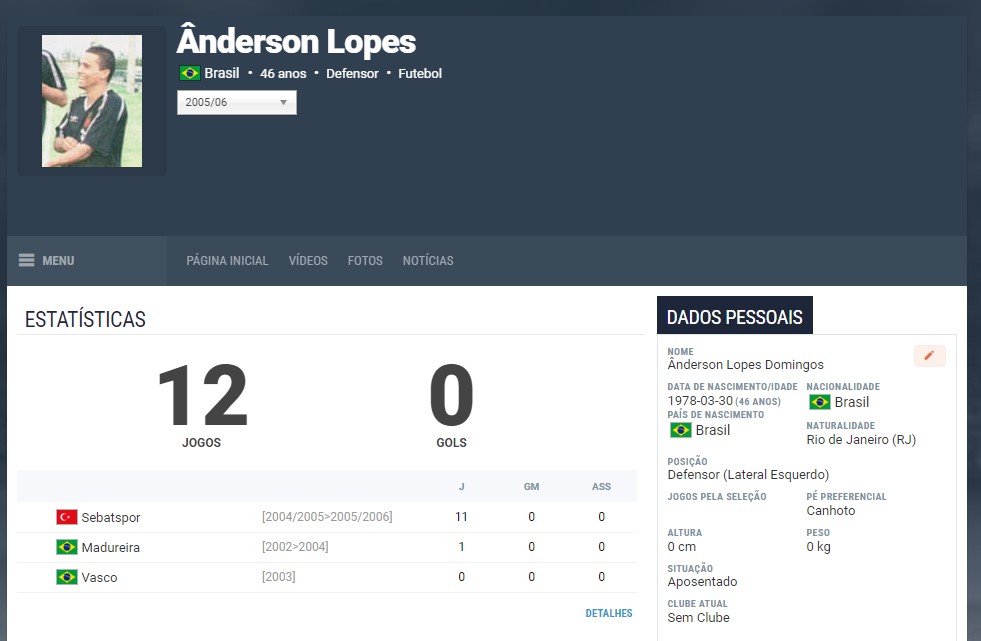 Números de Anderson Lopes, o Pará, como jogador do Vasco. Foto: Reprodução
