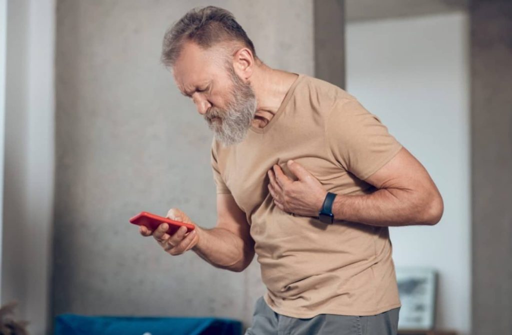 O sintoma clássico de infarto é a dor no peito, que pode irradiar para o braço esquerdo, pescoço e costas, como um aperto.