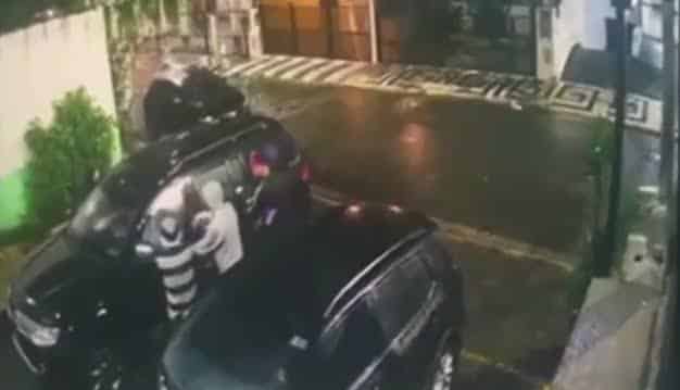 Um carro blindado salvou a vida de uma mulher durante uma tentativa de assalto em Guarujá, litoral de São Paulo, nesta quarta-feira (26). Imagens das câmeras de segurança mostram cinco suspeitos se aproximando do veículo estacionado. Eles não conseguiram abrir o carro e dispararam contra ele. Graças à blindagem, os criminosos não conseguiram concluir o assalto e fugiram.