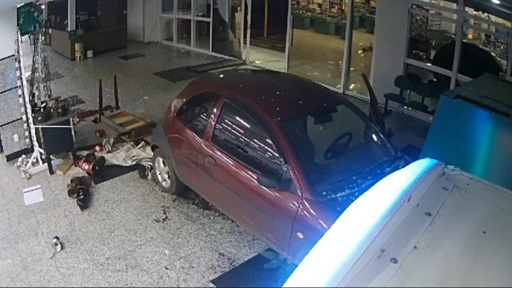 Câmeras de segurança flagraram o acidente, e a ação dentro do supermercado durou quase 10 minutos.