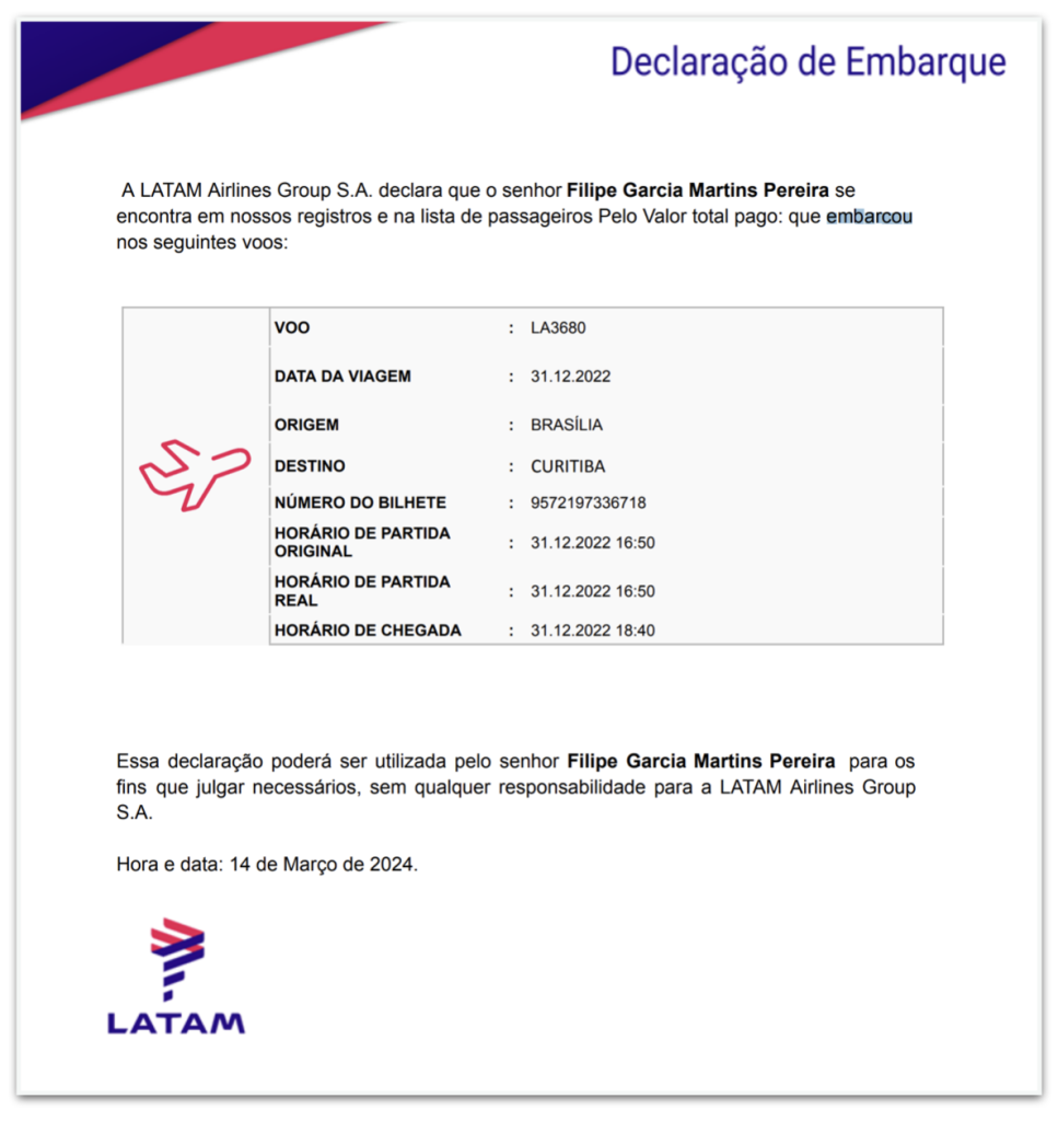 Os horários de geolocalização do celular de Martins condizem com os horários do voo para Curitiba, que os advogados dizem que o ex-assessor realizou em 31 de dezembro de 2022. A Latam confirmou que Filipe Martins embarcou para a capital paranaense.