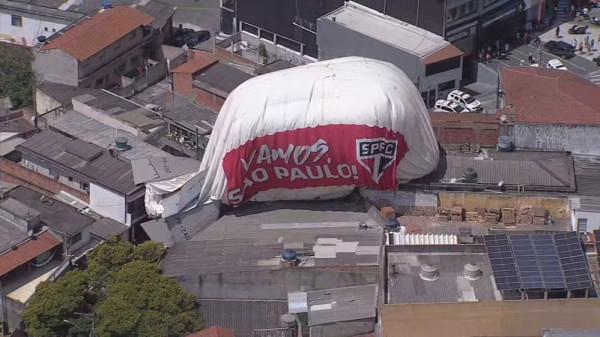 Dirigível com símbolo do São Paulo cai em bairro de Osasco; VEJA VÍDEO
