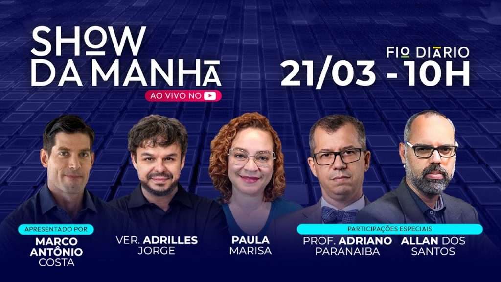 Apresentado por Marco Antônio Costa. Convidados: Ver. Adrilles Jorge e Paula Marisa. Participação especial: Allan dos Santos e Prof. Adriano Paranaiba. O Show da Manhã vai ao ar de segunda a sexta, das 10h às 12h.