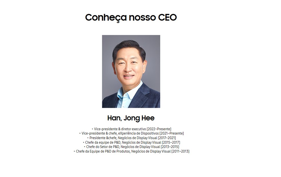 “Han foi fundamental no lançamento das televisões LED de classe mundial da Samsung. Suas numerosas inovações permitiram à empresa demonstrar continuamente sua liderança tecnológica”, escreveu a empresa no texto de biografia do executivo.