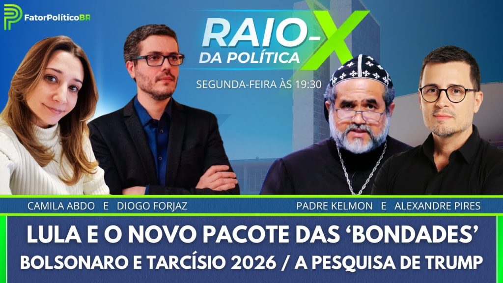 O Raio X da Política recebe Padre Kelmon e o analista político Alexandre Pires. Apresentação de Camila Abdo e Diogo Forjaz