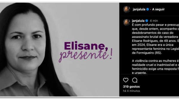 Elisane tinha 49 anos e era vereadora pelo PT na cidade gaúcha de Formigueiro, que fica a 285 km de Porto Alegre. Sua morte despertou uma onda solidariedade entre petistas, inclusive com a primeira-dama, Janja Lula da Silva, que fez uma publicação de apoio no seu perfil no Instagram em 18 de junho: “A violência contra as mulheres é uma realidade cruel e inadmissível e o feminicídio exige uma resposta firme e urgente”.