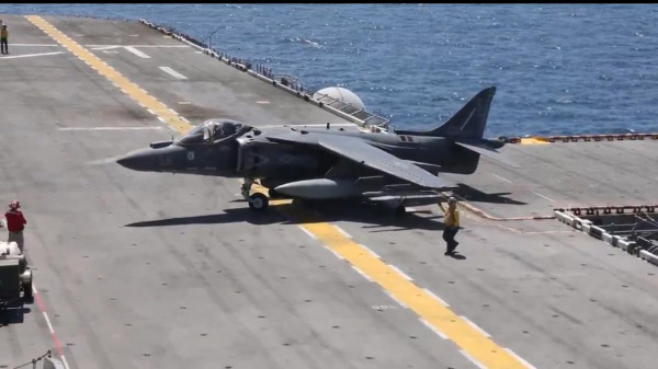 O Pentágono divulgou imagens dos caças McDonnell Douglas AV-8B Harrier dos Fuzileiros realizando treinamento de pouso e decolagem na vertical a bordo do USS Iwo Jima, o porta-aviões deslocado para o Mar do Caribe para combater o narcotráfico de origem latinoamericana@hoje_no pic.twitter.com/mWHi9z2l0k