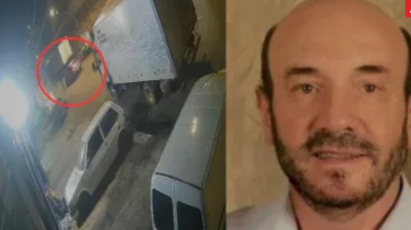 Um vídeo de uma câmera de segurança do local do crime mostra o momento em que os criminosos atiram contra o carro do professor.