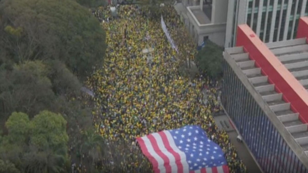 Mais cedo, o deputado federal, autoexilado no país norte-americano desde março, disse que a bandeira dos EUA exposta em manifestação realizada na Avenida Paulista, em São Paulo (SP), é um “protesto pela liberdade”, contra o ministro Alexandre de Moraes, do Supremo Tribunal Federal (STF), além de um “agradecimento” a Trump.