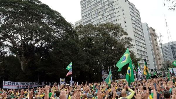 Muitos levaram cartazes escritos em inglês. Outros chegaram a exibir símbolos dos Estados Unidos. Inclusive, um deles trazia a palavra “Magnitsky”, referência à lei norte-americana usada para impor sanções contra autoridades estrangeiras violadoras de direitos humanos. O relator dos processos sobre a “trama golpista”, Alexandre de Moraes, foi sancionado pela Mgnitsky.