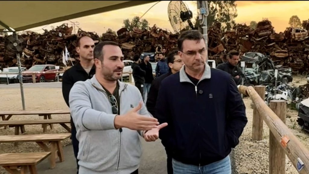Flávio Bolsonaro, senador e pré-candidato à Presidência da República, e o deputado federal Eduardo Bolsonaro estiveram nesta quarta-feira (28) em Sderot, no sul de Israel, onde visitaram a delegacia atacada em 7 de outubro de 2023. No local, assistiram a um vídeo exclusivo apresentado oficialmente pelo Governo de Israel a autoridades internacionais, que documenta a tentativa de genocídio promovida pelo Hamas naquele dia contra os judeus.